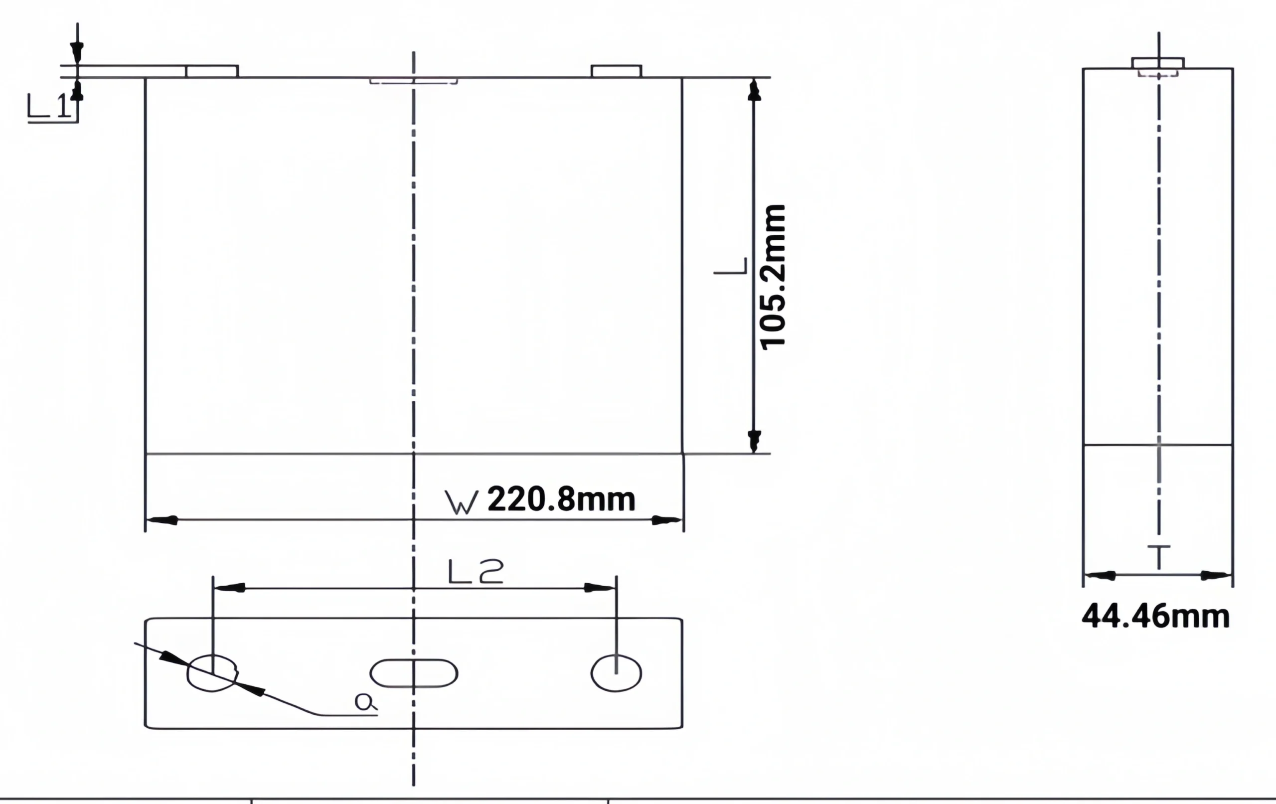 | Dimensões | 220,8 mm x 44,5 mm x 105,2 mm |